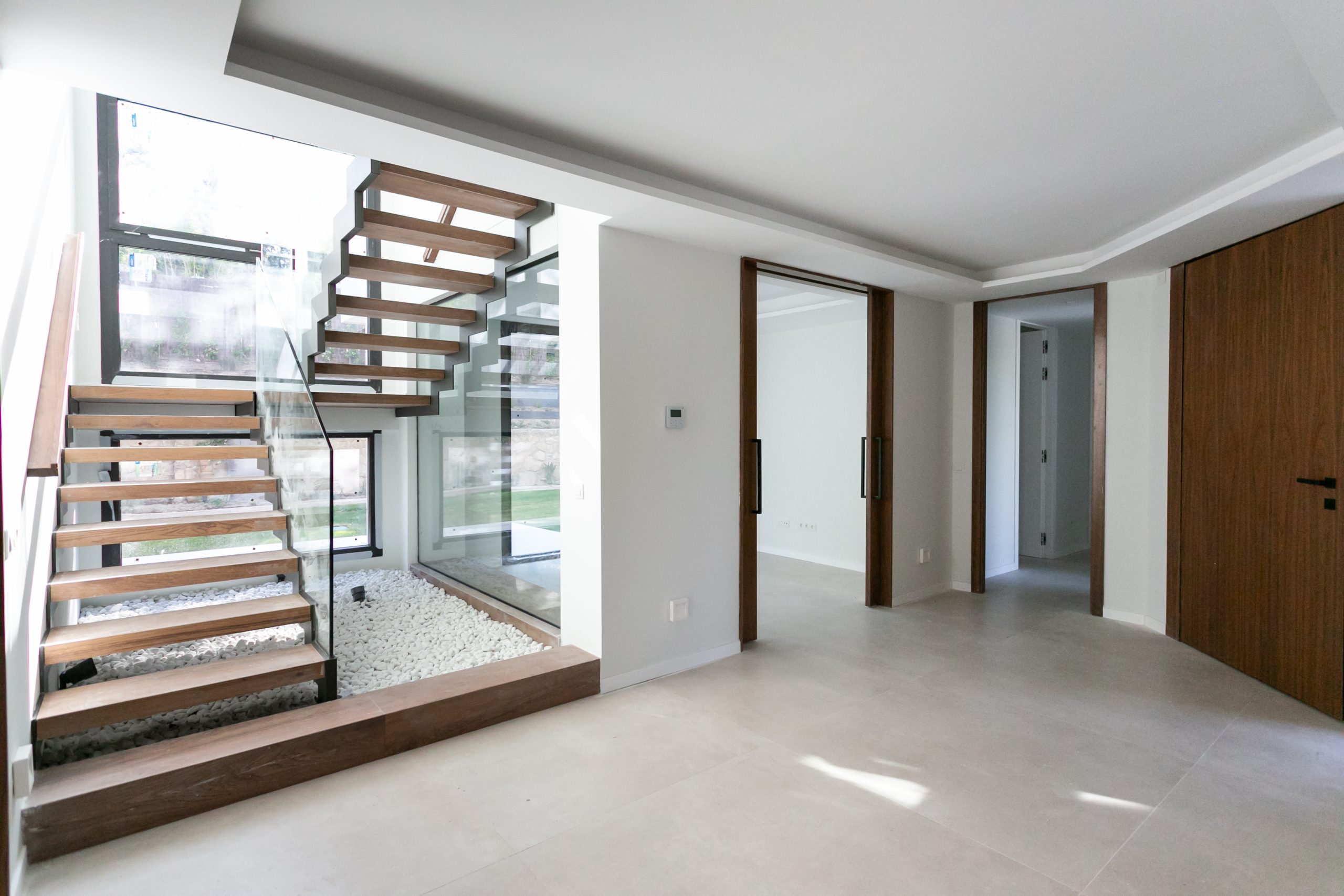 En la planta baja nos encontramos un amplio hall da la bienvenida a un luminoso salón en dos ambientes, perfecto para disfrutar de momentos inolvidables. La cocina amueblada cuenta con una zona de comedor ideal para reuniones familiares. Además, hay dos dormitorios en suite, un despacho, zona de lavado, gimnasio y un garaje con capacidad para tres coches. También encontrarás un apartamento independiente con cocina y baño, perfecto para invitados o como espacio de trabajo o de servicio.